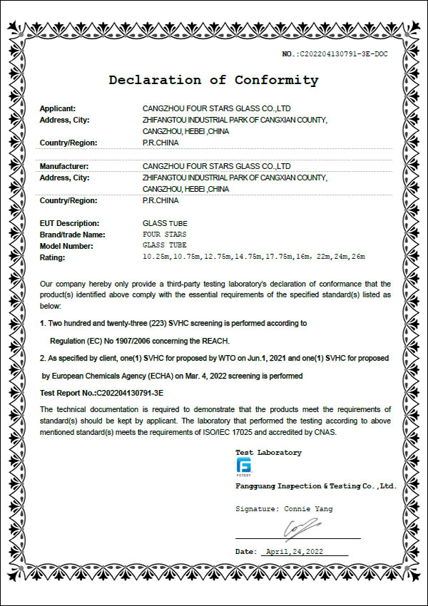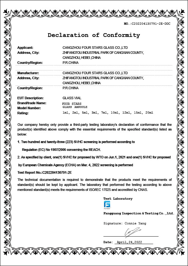 DMF安瓿瓶認證證書